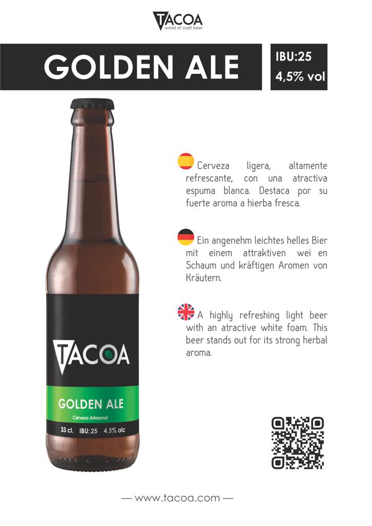InicioCervezasGolden Ale Golden Ale€3.00 IBU: 25 4,5% vol Golden Ale cantidad Añadir al carrito SKU: 134582-9 Categoría: Cervezas ID producto: 3523 Descripción Información adicional Descripción Notas del sabor Cerveza ligera, altamente refrescante, con una atractiva espuma blanca. Destaca por su fuerte aroma a hierba fresca. IBU: 25 4,5% vol Información adicional Marcas Campo, Cruz, Estrella, Galicia También te puede gustar Pack mixto de 6 Uds €15.00 Añadir al carrito Surf Beer €3.00 Añadir al carrito Sin alcohol €3.20 Añadir al carrito Porter €3.20 Añadir al carrito